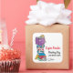 Reading day reading on a stack of book's event stickers. Customise with your own reading day event date and achievement. Original girl sitting on a stack of books reading fairy tales drawing and design by www.mylittleeden.com