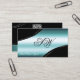 Superb Black Teal Curved Lines Monogram QR Code Business Card