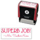 This fun rubber stamp design features the positive feedback message "SUPERB JOB!" and a personalised educator's name. It could be used by a teacher, educator, or tutor when marking assignments, to indicate that a student has done well.