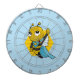 Dartboard with an illustration of a cute super hero bee with a cape in action pose, illustration by MaxiHarmony / Radka Kavalcova