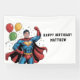 Celebrate your little hero in true comic-book style! This fun and colorful superhero birthday party design features a bold caped hero, festive balloons, and confetti on a bright sunburst background—perfect for an action-packed boys birthday celebration.