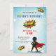 Unleash the hero within with this exciting birthday invitation! Our comic book inspired design features a heroic silhouette against a star filled sky, complete with "POW!" and "WOW!" exclamations. Perfect for a young boy's birthday celebration. Personalize the event details for a memorable and super fun gathering that your little hero and his friends will love.
