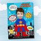 A superhero-themed birthday party is a popular and exciting way to celebrate a child's special day. It's a fun way to encourage imagination and creativity while celebrating a boy's birthday. This bold, bright coloured superhero-themed design featuring comic book superhero style in blue colour is a great way to bring the excitement of comic books and superheroes to life for young fans. Add a cropped photo of the birthday boy to create your unique customised super hero theme party supplies.