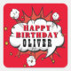 Superhero Comic Speech Bubble Boy Happy Birthday Square Sticker