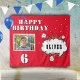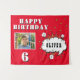 Superhero Comic Speech Cloud Boy Birthday Party Photo Backdrop Tapestry. Fun red superhero birthday banner for boys. Add your photo, name and age.
