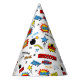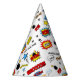Word art graphic party hat features. Easy to assemble. Word art graphic pattern coordinates with Superhero Party Collection in our shop as well as most Superhero themed birthday parties.
