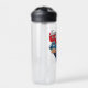 The bottle looks even better in real life. The ice cubes I put in lasts all day! I have my bottle with me all the time. It's summer and having something cold to drink feels amazing. With this bottle I always have something super cold. I have only tried the hot drink once and it lasted a long time as well. The color blue is a navy blue and the white printed on it is vibrant. It printed perfectly. I love my personalized smile water bottle.