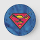 A beveled version of the classic Superman S-Shield logo atop a blue fabric texture.
