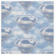 The classic Superman S-Shield logo in light blue with a cutout of Metropolis seen through the "S", on a cloudy blue sky patterned background.