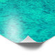 A beautiful landscape with unique textures showing a huge supermoon rising in a mountain landscape with rolling hills and trees in shades of blue, cyan, gold, and yellow.