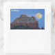 Rectangular sticker with an image of a watercolor painting of a supermoon rising above the Crimson Cliffs, a red rock formation close to the town of Sedona, Arizona, and the head of Snoopy Rock, a predominant and recognisable red rock formation. See matching postcard. See the entire Arizona Sticker collection in the CARDS, POSTCARDS & STICKERS section.