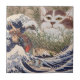 Unique collages of famous ukiyoe, or Japanese woodblock prints, the Great Wave off Kanagawa by Katsushika Hokusai (1760-1849) and Supernatural Cat by Kawanabe Kyosai (1831- 1889).