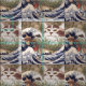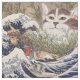 Unique collages of famous ukiyoe, or Japanese woodblock prints, the Great Wave off Kanagawa by Katsushika Hokusai (1760-1849) and Supernatural Cat by Kawanabe Kyosai (1831- 1889).