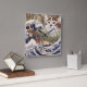 Unique collages of famous ukiyoe, or Japanese woodblock prints, the Great Wave off Kanagawa by Katsushika Hokusai (1760-1849) and Supernatural Cat by Kawanabe Kyosai (1831- 1889). Clock face displayed with Japanese Kanji numbers