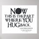 Check out this fun Supernatural typography quote from Sam Winchester that reads: "Now this is the part where you hug back".