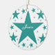 Superstar collection Round Ornament in teal featuring a cascade of fun stars. This cute and girly star design would make a great gift for any daughter, niece or other young female in your life. This fun star would make a lovely keepsake ornament by adding a name and/or personalised phrase.