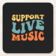 Support Live Music - Retro Typography Band Merch Square Paper Coaster