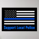 Elegant and bold thin blue line American flag to show support for Local Police Officers, Department and Law Enforcement. Black blackground with bright blue and white patriotic theme. Show your community pride around your house, home, small business or neighbourhood with a Support the Police themed gift for Father's day or any occasion for a new police Academy graduate or family member of a Police officer.