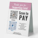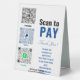 What is a Venmo payment? It is a digital payment system where customers can scan your business QR code image and pay electronically. Learn how to accept Venmo payment is as easy as signing up on your phone. Then just create your own Venmo, PayPal, or Cash App QR code image Pay HERE sign. Digital payment systems are popular at craft shows, popups, and Farmers Markets. Perfect when customers run out of cash. Customise with your business name, social media information and custom text. Pink Venmo sign for your support small business booth. Perfect for a woman-owned business.