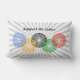 Red, gold, blue, black and green on a white backround represents the colours of the flags and continents of all the countries that partake in the Winter and Summer Games. These rings linked together represent unity among the countries that partake in the winter and summer games. This pillow come in an assortment of fabrics and shapes.