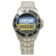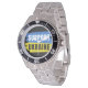 Has heft and feel of expensive stainless steel quartz watches. Good band with safety catch. I removed links, which is easy because engraved arrows show direction to push the linking pins. As always by this seller, the image (a railroad logo) is a perfect reproduction of my emailed image, and is precisely spaced and aligned.