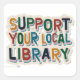 Show your love for reading and community spaces with this colourful “Support Your Local Library” square sticker! Perfect for book lovers, librarians, teachers, and students, this design spreads a positive message while adding a fun pop of colour to laptops, water bottles, notebooks, and more.