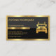 Overleaf, the same design theme is used. Just above the gold tab is your prestigious name, the business name with the gold truck logo on the right. Towards the black layer is the contact details and a slogan caption to publicise your services. All lettering for the card are in faux gold.