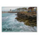 A digital rendering of surf on the rocks at Nahariya, Israel on the Mediterranean Sea. Nahariya is Israel's northernmost coastal city, 6 miles from the border with Lebanon. A walkway, lined with restaurants, coffee houses and palm trees runs parallel to the city's long, clean beaches. Customisable Hebrew text reading "Nahariya" (נהריה) also appears. Enter your own text to replace the Hebrew.