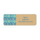 These return address labels have a geometric design of hexagons in four shades of blue on a field of tan stripes in two shades.
