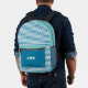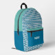 This fun surfer inspired backpack design features an aqua, blue, and white colour palette with waves pattern and your initials. It's a fun modern design for all ages!