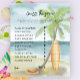 Baby on Board! Baby shower invitation - perfect for a summer baby shower. Beach theme. Watercolor design has a ocean and beach scene with surfboard, palm tree and summer hat.