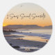Surf Beach Personalised Classic Round Sticker with a photo of surf beach sunset in Byron Bay, Australia taken by AB and small initials on the bottom.
