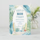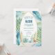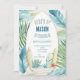 Surf Birthday Party Invitation in Blue with tropical leaves, beautiful designs in aqua, blue, and beige, with surfboards. Perfect for your little surfer!
