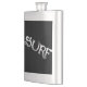 Surf flasks are for whiskey, tequila, water, other liquids, surfers, and surfing fans. Surf is Steamy Raimon original calligraphy art.