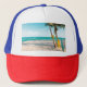 Surf boards on beach throw pillow trucker hat