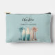 Watercolored retro surf boards and palm trees in gree, yellow and orange. Light teal, aqua coloured background. Personalise and add your name, monogram initials and full name.