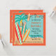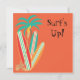 Super colourful surf party invitation for any occasion! Great for a birthday party with colourful surf boards, palm tree, tiki torch and seashells.