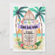 This beach-themed "Big One" invitation features a watercolor surfboard, palm trees, and ocean—perfect for a sun-soaked celebration. With bright tropical colours and fun coastal vibes, it's the ideal invite to set the tone for your baby’s 1st birthday. Personalise with your party details and get ready to ride the wave into one! Art by KL Stock