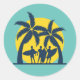 Cute graphic of beach scene with palm trees, surfers and the sun. Perfect for a surf lover.