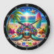 Greet every moment with a splash of fun! This vibrant clock features a cool turtle sporting a colourful shell, with a surfboard backdrop, surrounded by starfish and seashells on a sunny beach. The 'Welcome' message adds a friendly touch, perfect for entryways, living rooms, or any space needing a coastal vibe. Bring the beauty of the beach home with this unique piece.