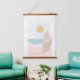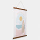 This cute and modern surf, beach hanging tapestry features a woodgrain surfboard on a the beach with scattered shells.
