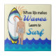 Surfboard Ocean Waves Blue Motivational Quote Ceramic Tile