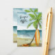 Baby on Board! Baby shower invitation - perfect for a summer baby shower. Beach theme. Watercolor design has a ocean and beach scene with surfboard, palm tree and summer hat.