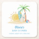 Surfboard Sunshine Beach Palm Tree Baby Shower Square Paper Coaster