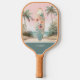 This pastel beachy pickleball design features a tropical flowered surfboard sticking up out of the sand against a tropical beach and pastel pink sky. This surfing inspired pickleball paddle would make a great gift for a beach lover or surfer, especially if they like the warm waters of tropical beaches or the scent of beautiful tropical flowers. Your or your recipient's monogram initials appears in light sandy cream colour against a teal-ish sage green background.