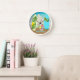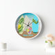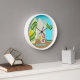 Surfboards in sand, personalized wall clock. Artistic surfboards with tropical decor are stuck in sand at the waters edge in this fun design for a teen girls bedroom. Personalize with her name, or any text, at the bottom of a square or round clock, in bright yellow. Don't let the text get close to the edge or it may not print.