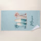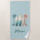 Surfboards palm trees retro sage green beach towel