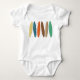 Striped surfboards tee. Text can be added and surfboard size can be customised smaller.