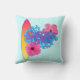 Surfer girl with water splash graphic, surf board, and digitally painted hibiscus flowers.