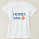 Distressed image features blue text - Surfer Girl, with an orange hibiscus to the right.